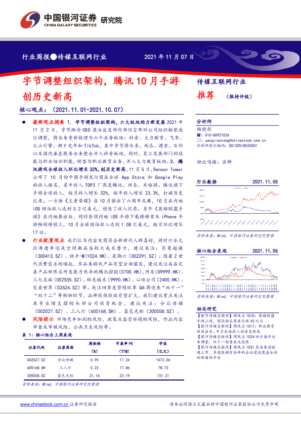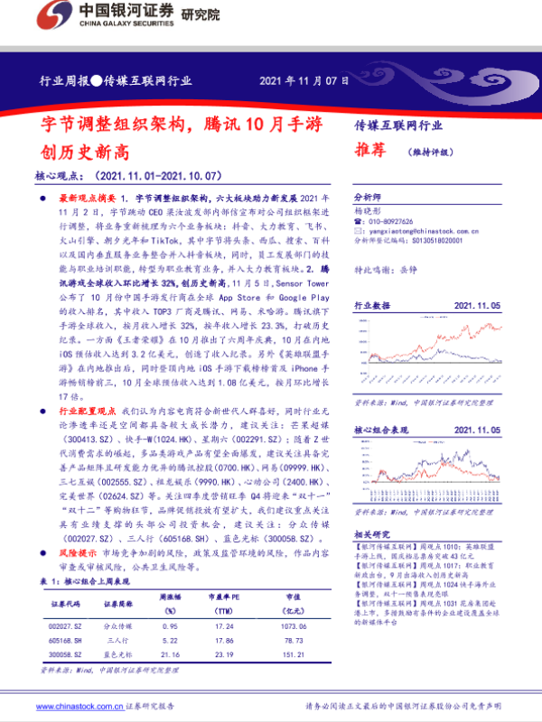 【银河证券】【20211107】传媒互联网行业:字节调整组织架构,腾讯10月手游创历史新高-35页