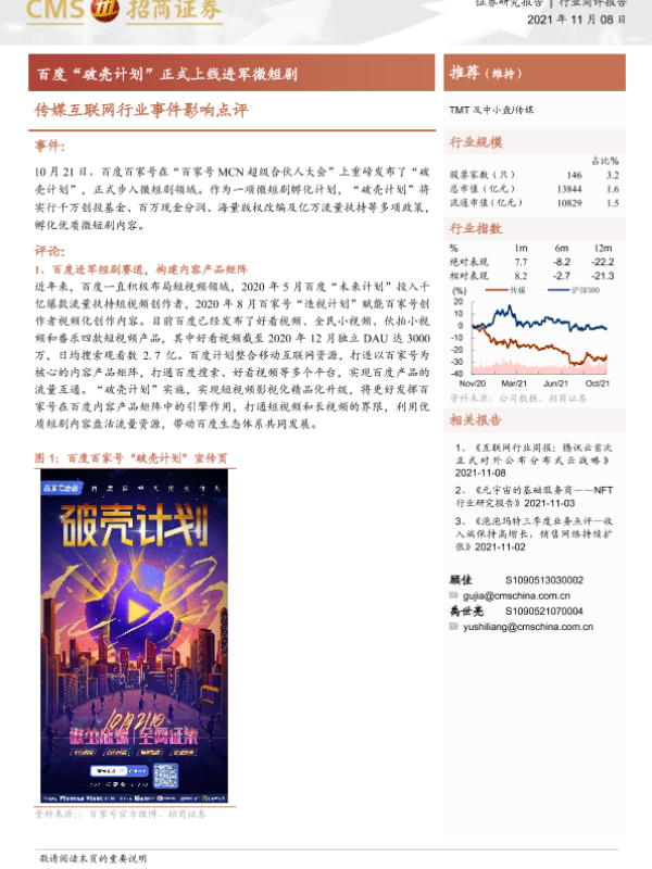 【海通证券】【20211108】传媒互联网行业事件影响点评:百度“破壳计划”正式上线进军微短剧-3页