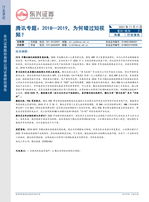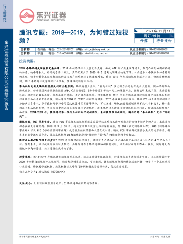 【东兴证券】【20211111】腾讯专题:2018—2019,为何错过短视频?-12页