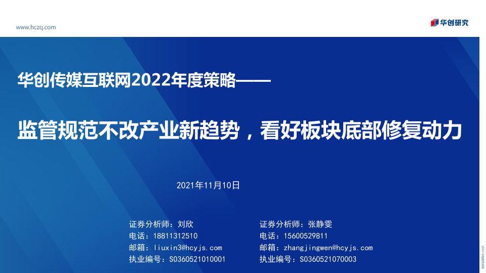【华创证券】【20211110】华创传媒互联网2022年度策略:监管规范不改产业新趋势,看好板块底部修复动力-54页