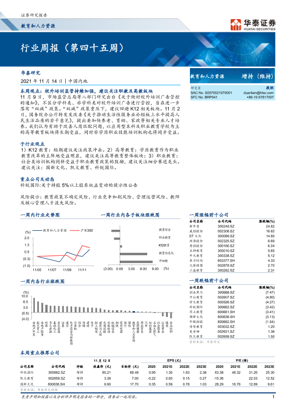 【华泰证券】【20211114】教育和人力资源行业周报(第四十五周)-14页