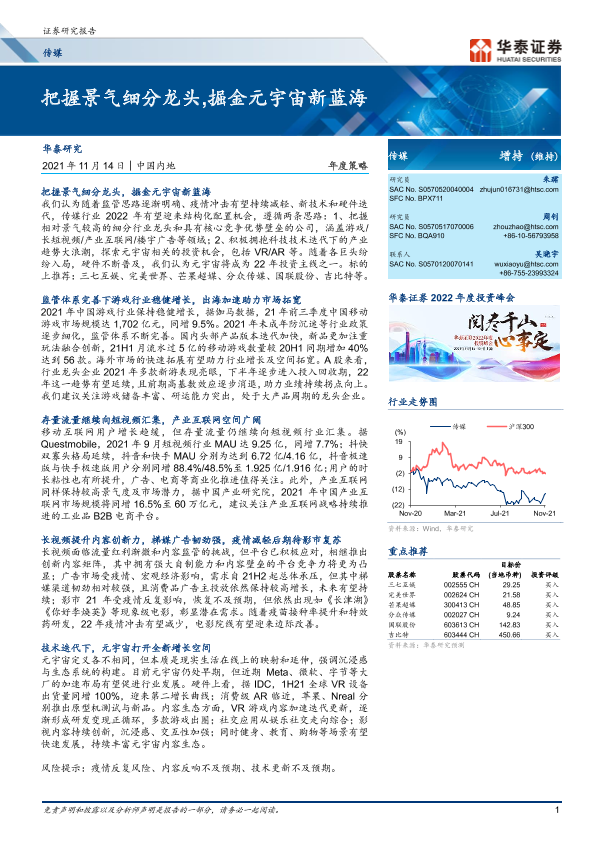 【华泰证券】【20211114】20211114-华泰证券-传媒年度策略:把握景气细分龙头,掘金元宇宙新蓝海-47页