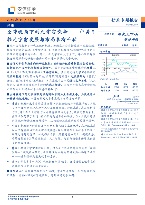 【安信证券】【20211116】全球视角下的元宇宙竞争:中美日韩元宇宙发展与布局各有千秋-14页