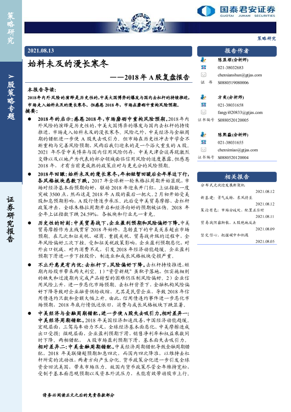 【国泰君安证券】【20210813】始料未及的漫长寒冬——2018年A股复盘报告-22页