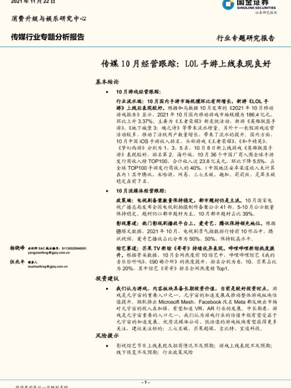 【国金证券】【20211122】传媒10月经营跟踪:LOL手游上线表现良好-22页
