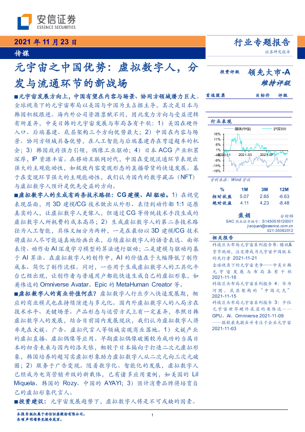 【安信证券】【20211123】元宇宙之中国优势:虚拟数字人,分发与流通环节的新战场-16页