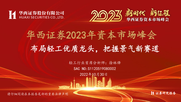 【华西证券】【20221030】轻工行业2023年资本市场峰会:布局轻工优质龙头,把握景气新赛道-47页