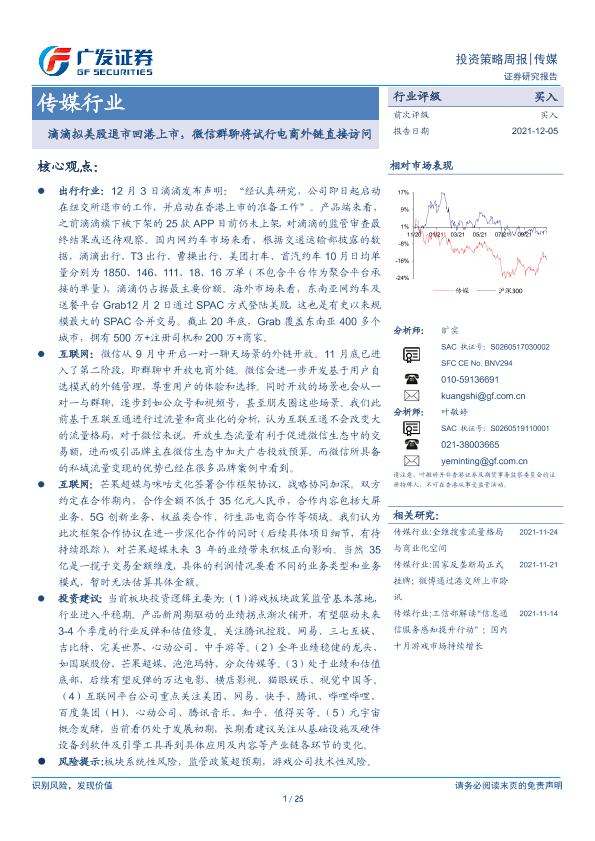 【广发证券】【20211205】20211205-广发证券-传媒行业投资策略周报:滴滴拟美股退市回港上市,微信群聊将试行电商外链直接访问-25页