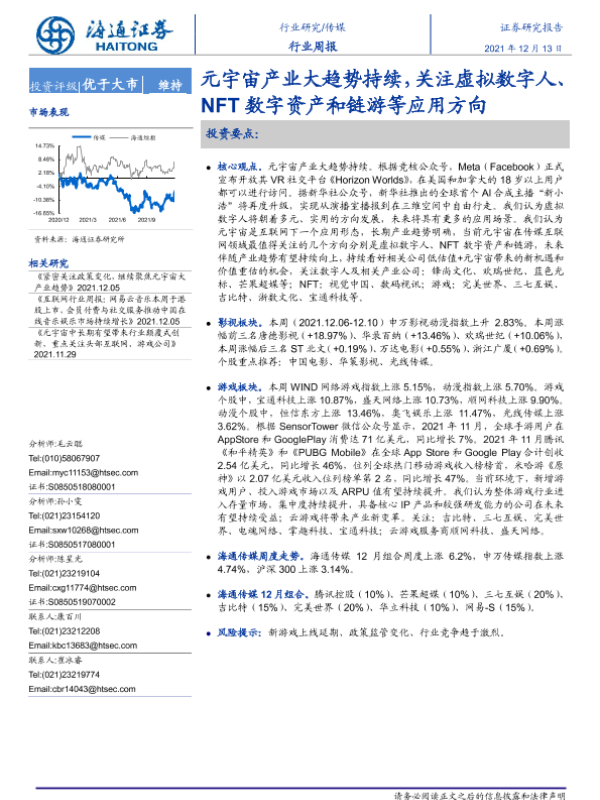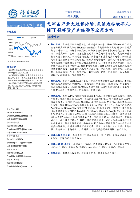【海通证券】【20211213】20211213-海通证券-传媒行业周报:元宇宙产业大趋势持续,关注虚拟数字人、NFT数字资产和链游等应用方向-11页