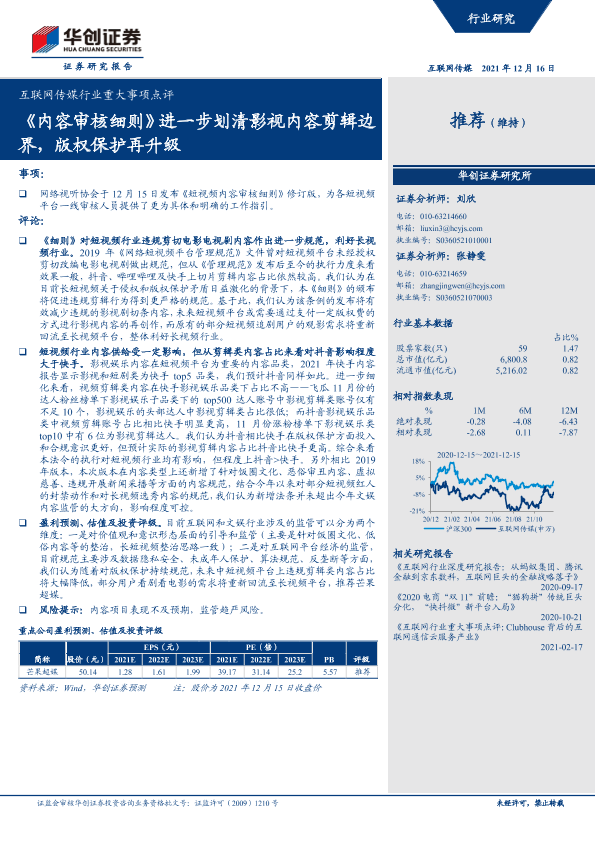 【华创证券】【20211216】互联网传媒行业重大事项点评:《内容审核细则》进一步划清影视内容剪辑边界,版权保护再升级-6页