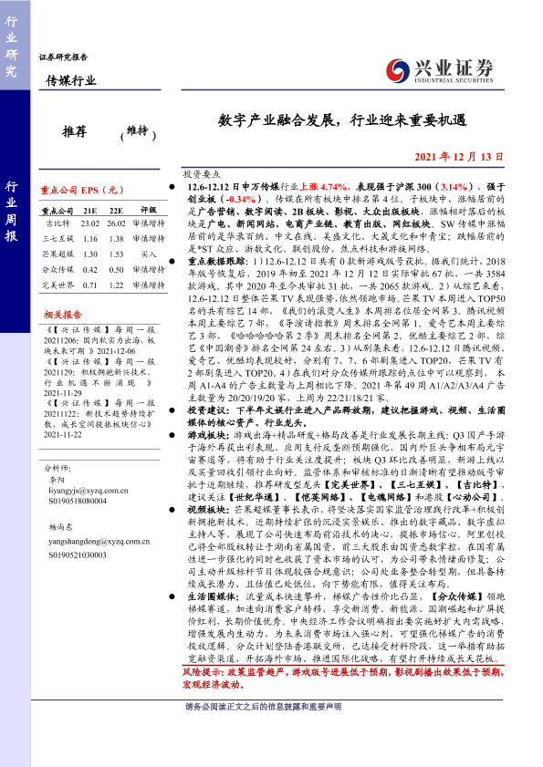 【兴业证券】【20211213】20211213-兴业证券-传媒行业周报:数字产业融合发展,行业迎来重要机遇-19页