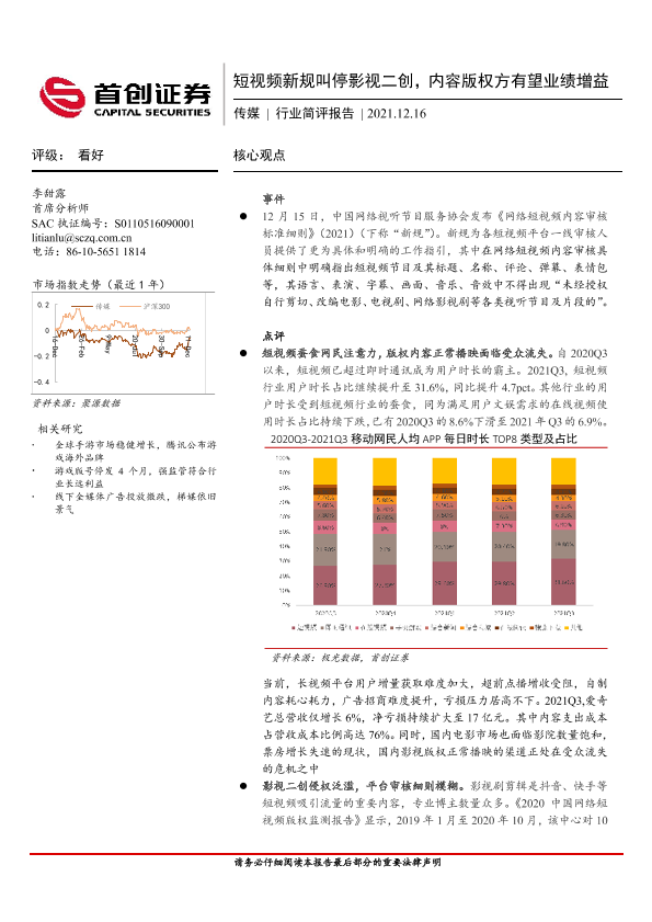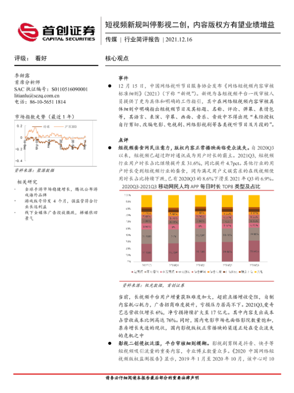 【首创证券】【20211216】短视频新规叫停影视二创,内容版权方有望业绩增益-3页