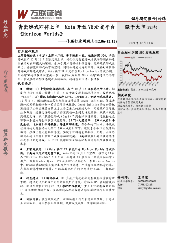 【万联证券】【20211213】青瓷游戏即将上市,Meta开放VR社交平台《Horizon Worlds》-13页
