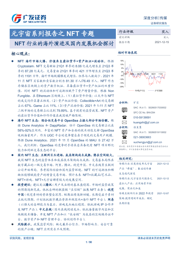 【广发证券】【20211215】元宇宙系列报告之 NFT专题:NFT行业的海外演进及国内发展机会探讨-30页