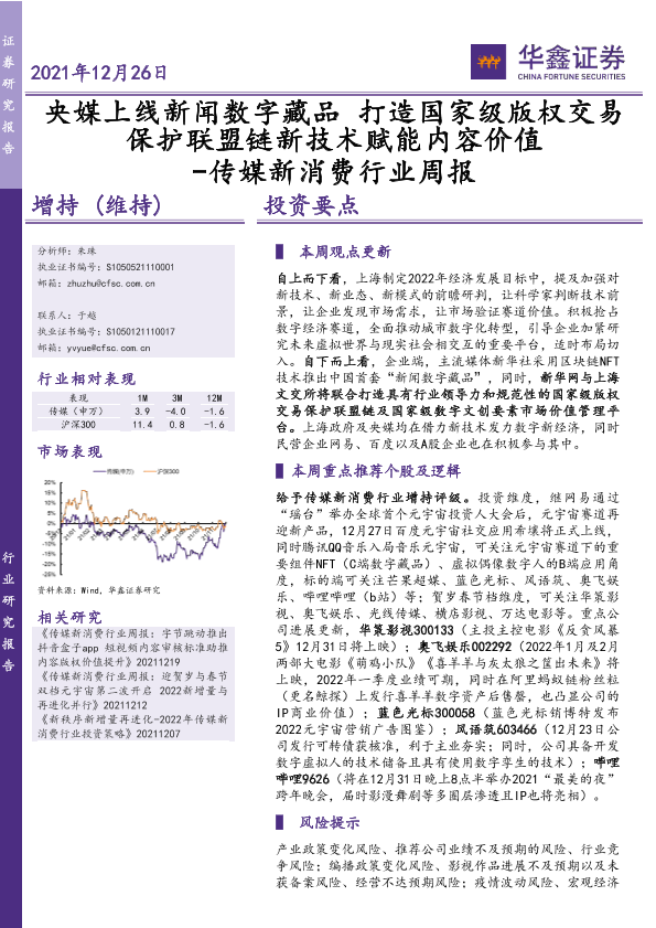 【华鑫证券】【20211226】央媒上线新闻数字藏品 打造国家级版权交易保护联盟链新技术赋能内容价值-18页