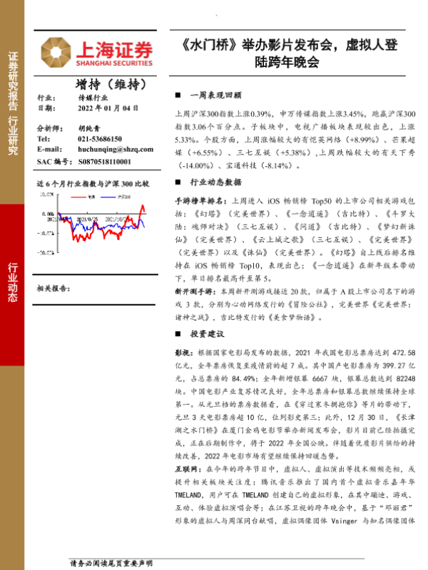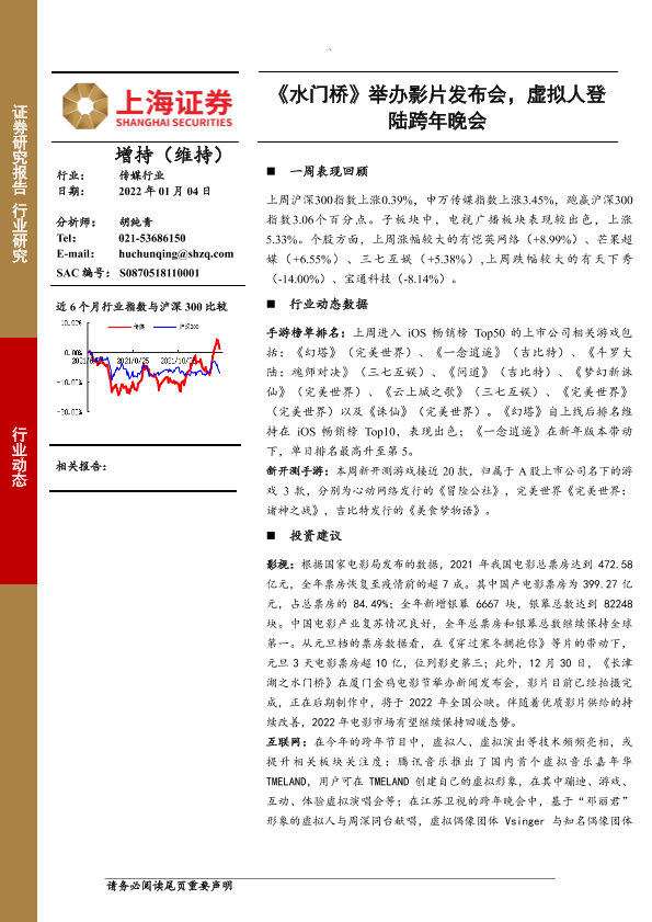 【上海证券】【20220104】20220104-上海证券-传媒行业:《水门桥》举办影片发布会,虚拟人登陆跨年晚会-9页