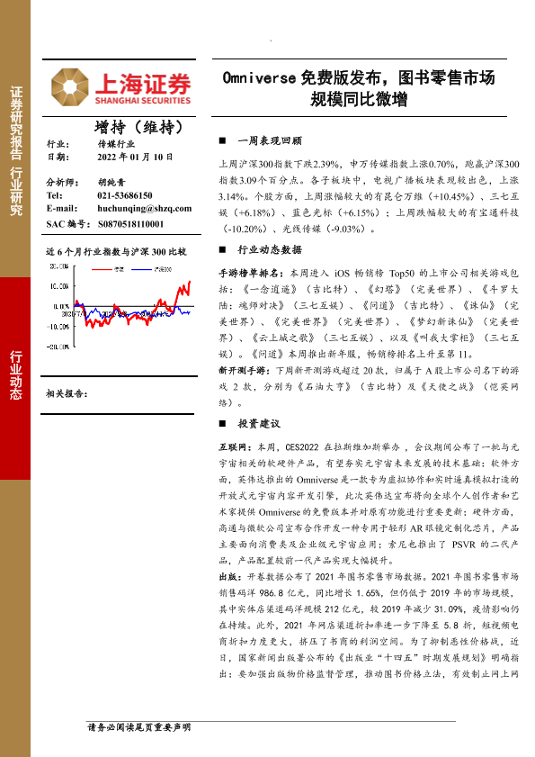 【上海证券】【20220110】20220110-上海证券-互联网传媒行业周报:Omniverse免费版发布,图书零售市场规模同比微增-9页