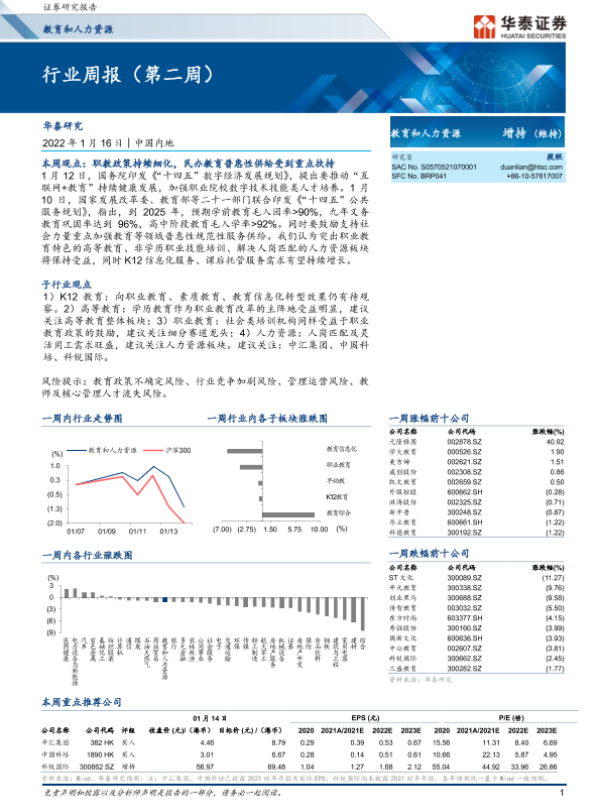 【华泰证券】【20220116】20220116-华泰证券-教育和人力资源行业周报(第二周)-13页