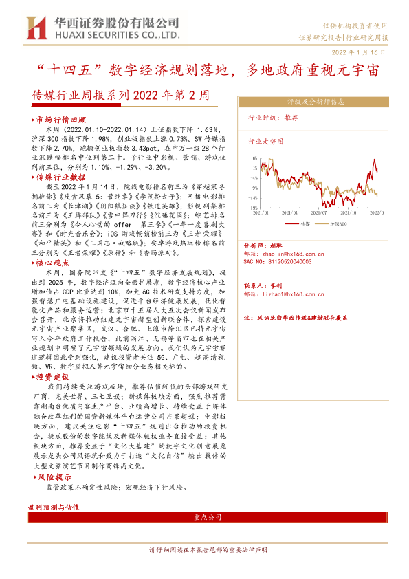 传媒行业 元宇宙 投资建议 政策规划 数字经济