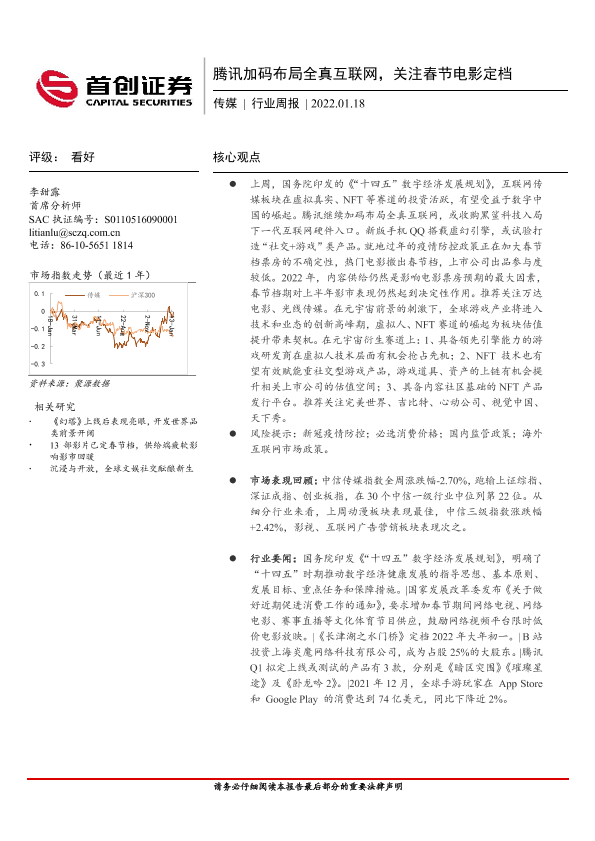 【首创证券】【20220118】腾讯加码布局全真互联网,关注春节电影定档-12页
