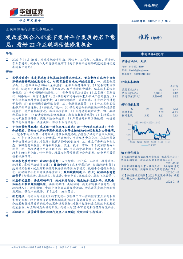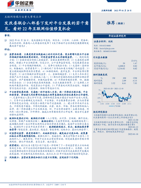 【华创证券】【20220120】互联网传媒行业重大事项点评:发改委联合八部委下发对平台发展的若干意见-4页