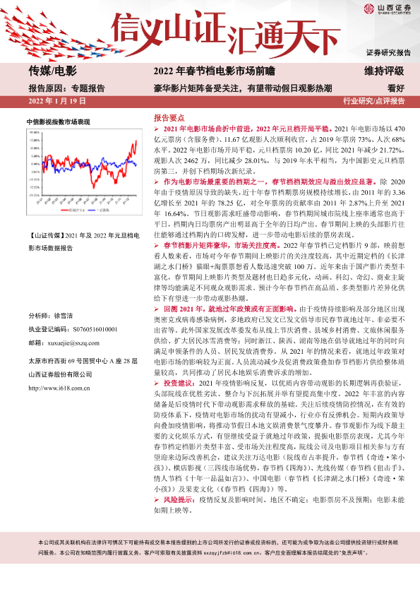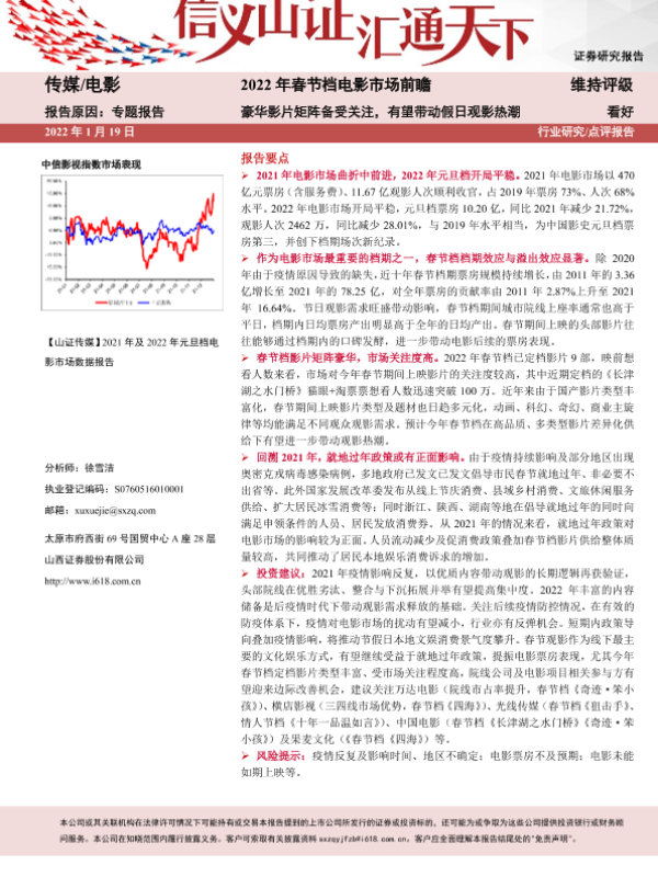 【山西证券】【20220119】2022年春节档电影市场前瞻:豪华影片矩阵备受关注,有望带动假日观影热潮-8页