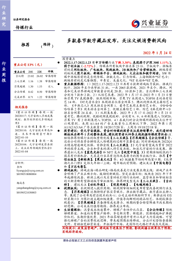 【兴业证券】【20220124】多款春节数字藏品发布,关注文娱消费新风向-19页