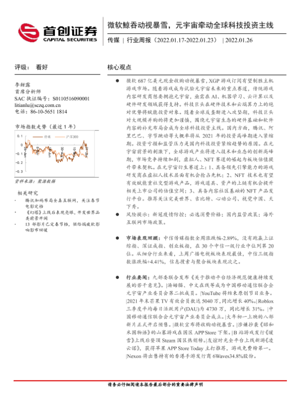 【首创证券】【20220126】微软鲸吞动视暴雪,元宇宙牵动全球科技投资主线-13页
