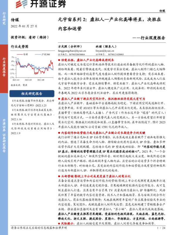 【开源证券】【20220127】元宇宙系列2:虚拟人—产业化高峰将至,决胜在内容和运营-24页