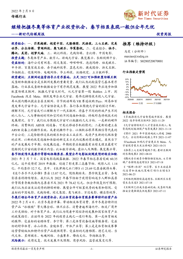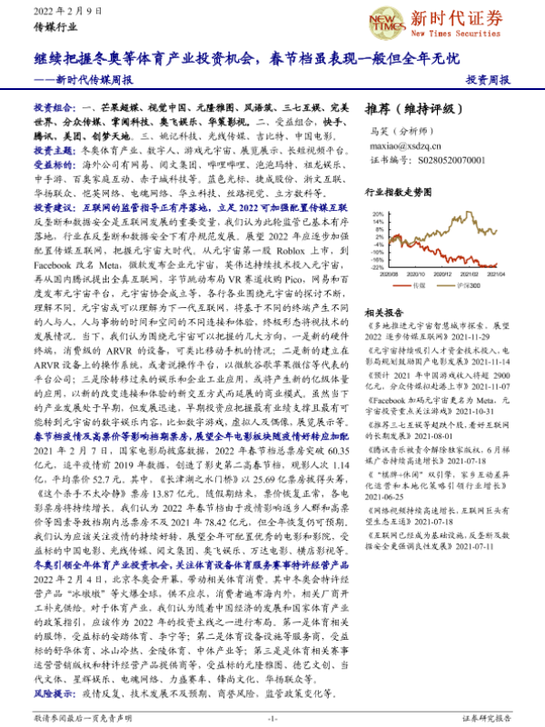 【新时代证券】【20220209】继续把握冬奥等体育产业投资机会,春节档虽表现一般但全年无忧-31页