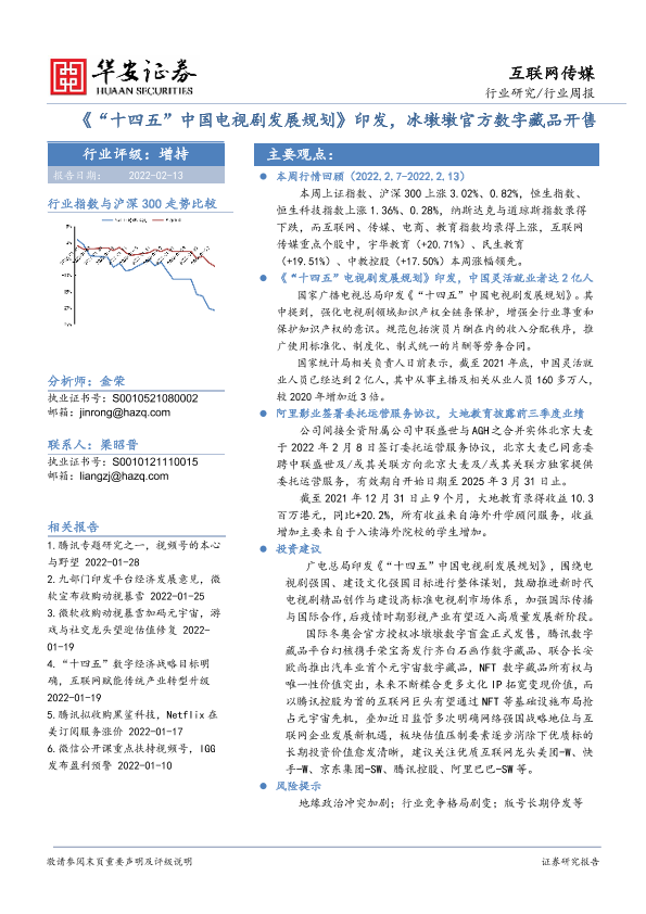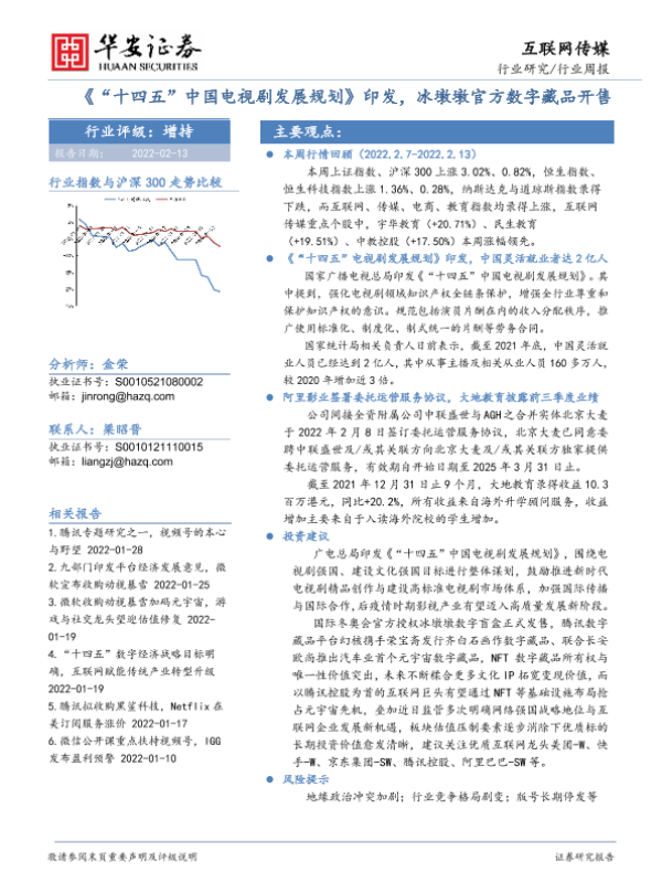 【华安证券】【20220213】互联网传媒行业周报:“十四五”中国电视剧发展规划印发,冰墩墩官方数字藏品开售-18页