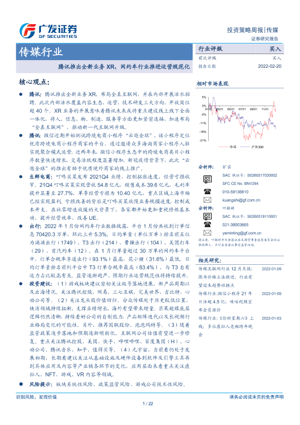 【广发证券】【20220220】传媒行业:腾讯推出全新业务XR,网约车行业推进运营规范化-22页