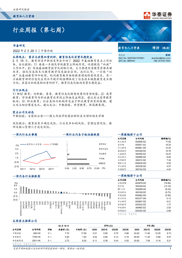【华泰证券】【20220220】教育和人力资源行业周报(第七周)-12页