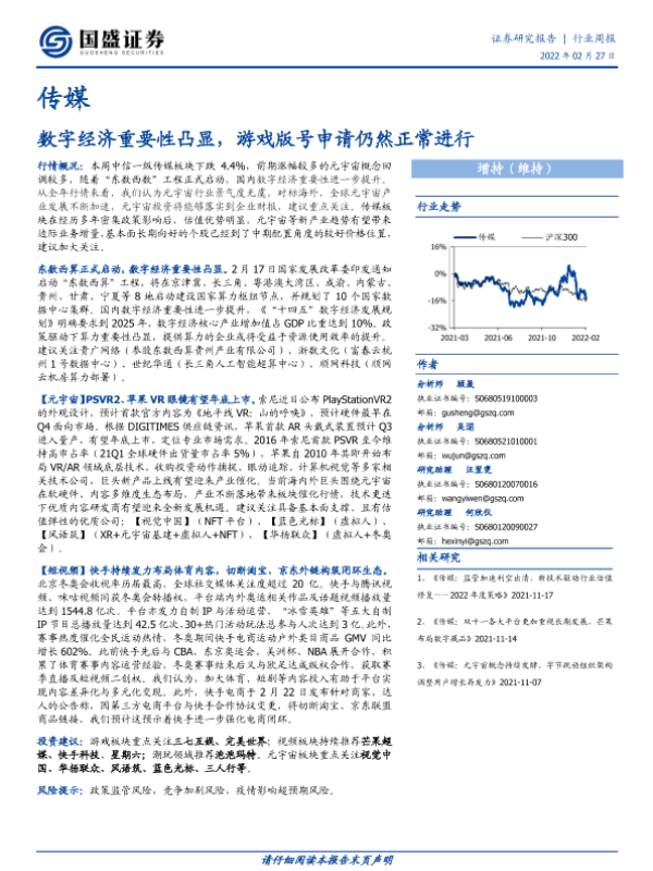 【国盛证券】【20220227】传媒:数字经济重要性凸显,游戏版号申请仍然正常进行-14页