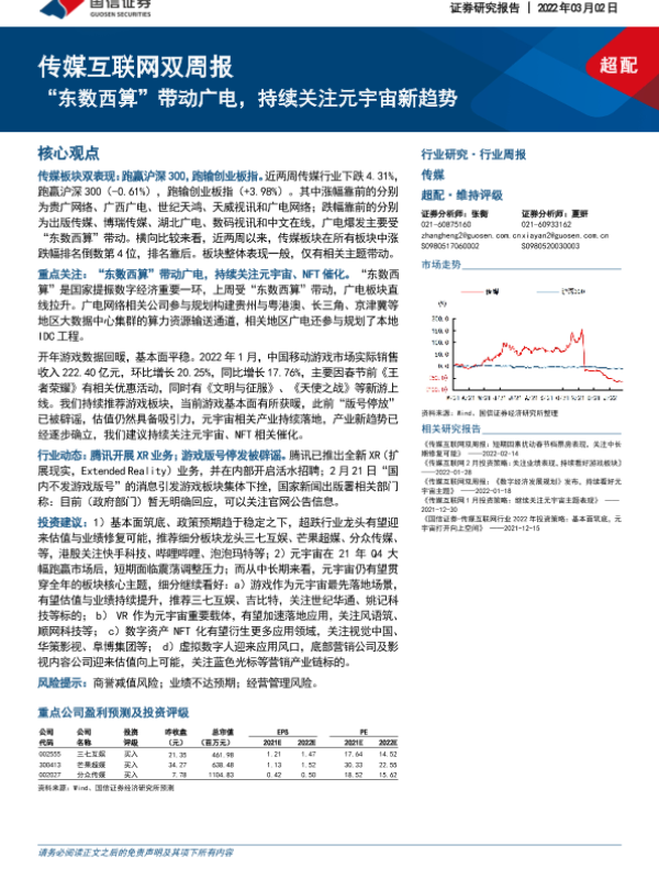 【国信证券】【20220302】传媒互联网双周报:“东数西算”带动广电,持续关注元宇宙新趋势-8页