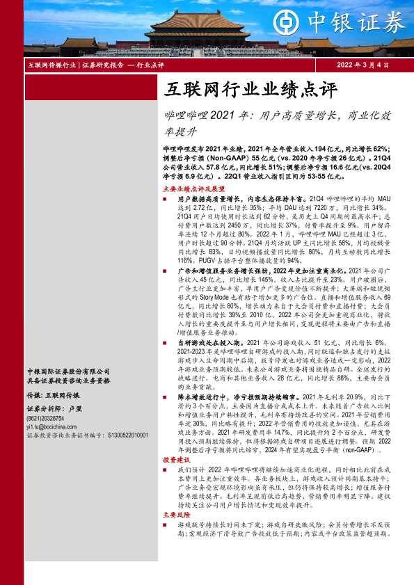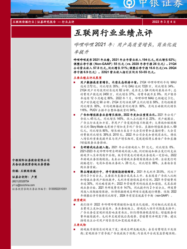 【中银证券】【20220304】哔哩哔哩2021年:用户高质量增长,商业化效率提升-3页