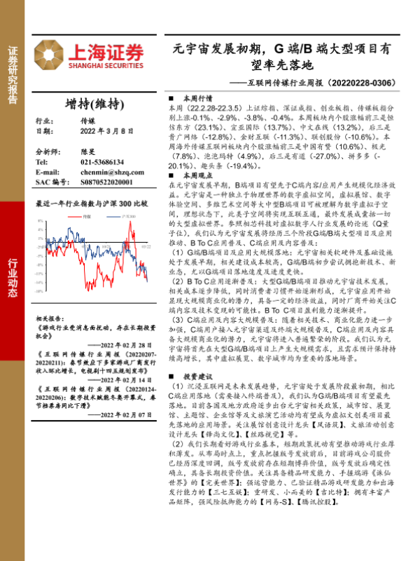 【上海证券】【20220308】互联网传媒行业周报:元宇宙发展初期,G端 B端大型项目有望率先落地-27页