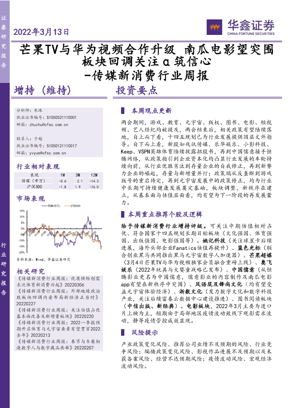 【华鑫证券】【20220313】芒果TV与华为视频合作升级南瓜电影望突围板块回调关注α筑信心-18页