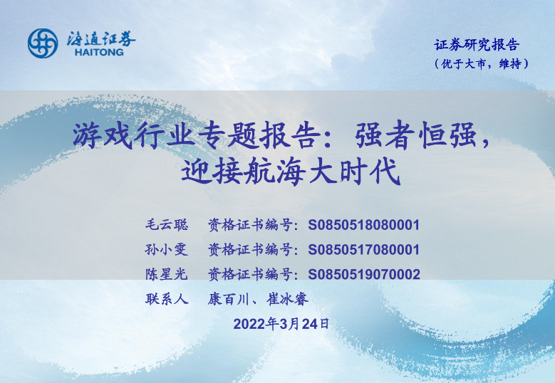 【海通证券】【20220324】游戏行业专题报告:强者恒强,迎接航海大时代-42页
