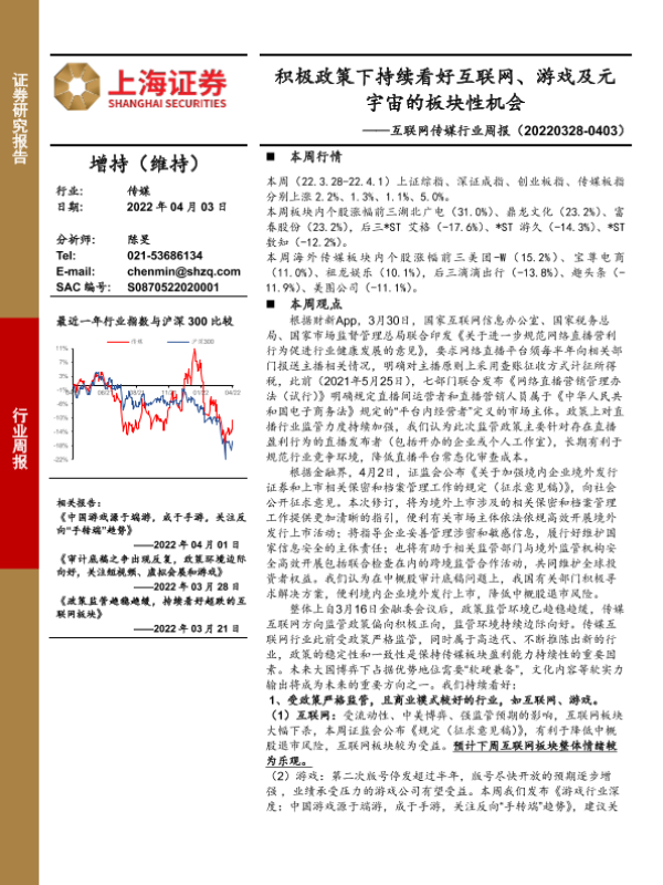 【上海证券】【20220403】互联网传媒行业周报:积极政策下持续看好互联网、游戏及元宇宙的板块性机会-27页