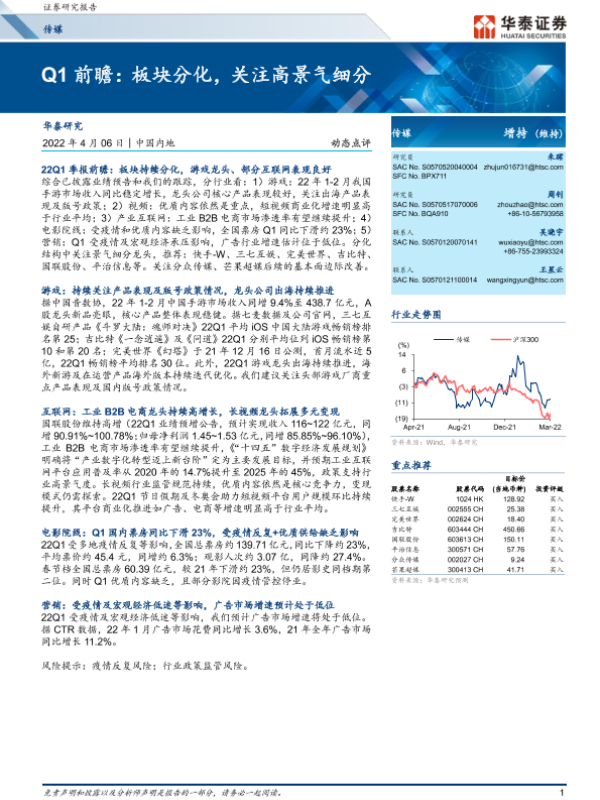 【华泰证券】【20220406】Q1前瞻:板块分化,关注高景气细分-9页