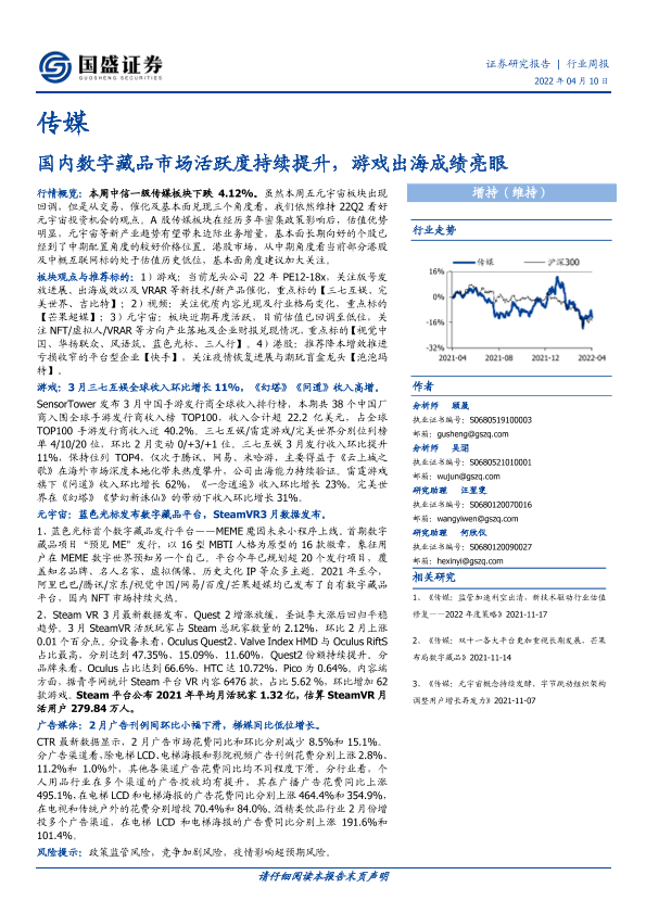 【国盛证券】【20220410】国内数字藏品市场活跃度持续提升,游戏出海成绩亮眼-15页