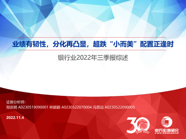【申万宏源】【20221104】银行业2022年三季报综述:业绩有韧性,分化再凸显,超跌“小而美”配置正逢时-46页