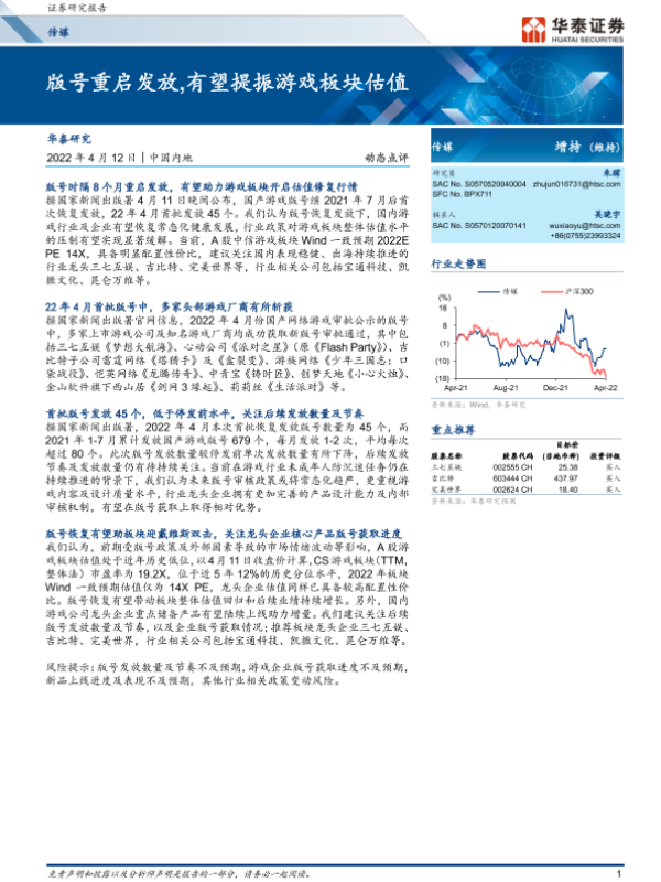 【华泰证券】【20220412】传媒动态点评:版号重启发放,有望提振游戏板块估值-7页