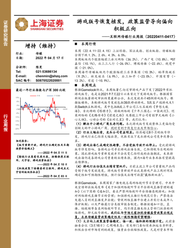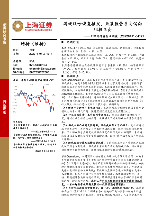 【上海证券】【20220417】互联网传媒行业周报:游戏版号恢复核发,政策监管导向偏向积极正向-25页