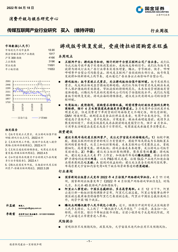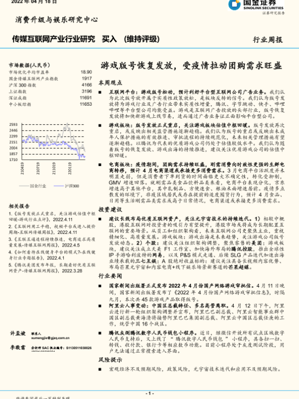【国金证券】【20220418】传媒互联网产业行业周报:游戏版号恢复发放,受疫情拉动团购需求旺盛-15页