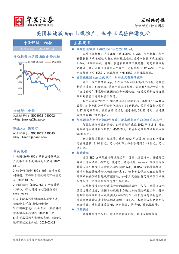 【华安证券】【20220424】美团极速版App上线推广,知乎正式登陆港交所-18页