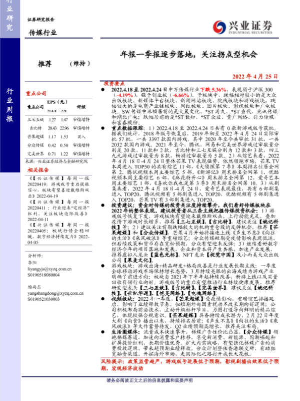 【兴业证券】【20220425】年报一季报逐步落地,关注拐点型机会-18页