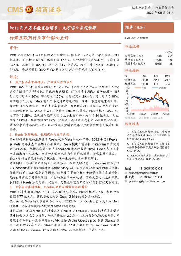 【海通证券】【20220501】传媒互联网行业事件影响点评:Meta用户基本盘重拾增长,元宇宙业务超预期-3页