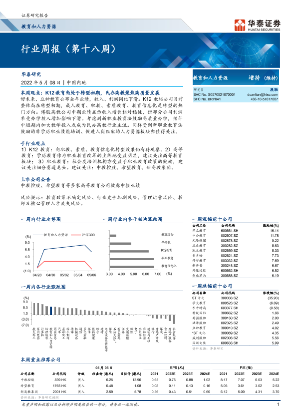 【华泰证券】【20220508】教育和人力资源行业周报(第十八周)-16页